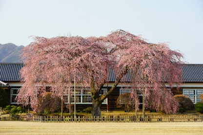 は杵原学校の枝垂れ桜が、これ以上無いというような好条件に恵まれた。満開直前の色の濃い姿を撮ることができた。麻績の里の舞台桜も満開!