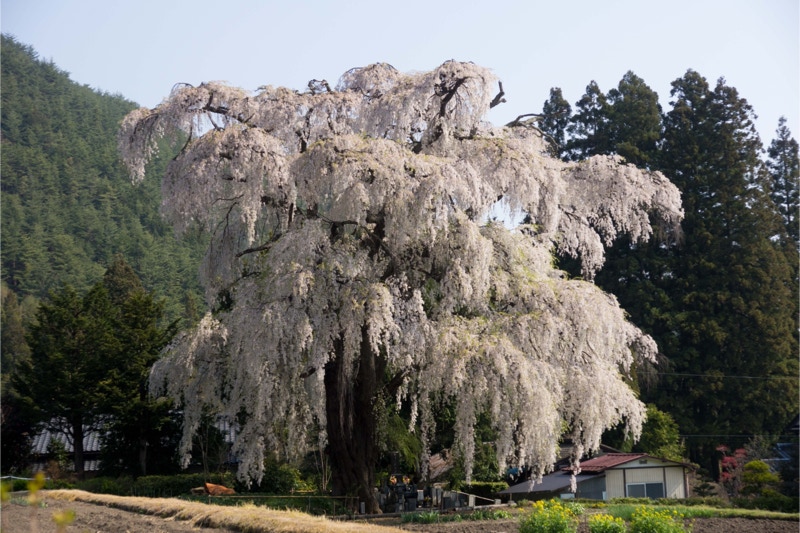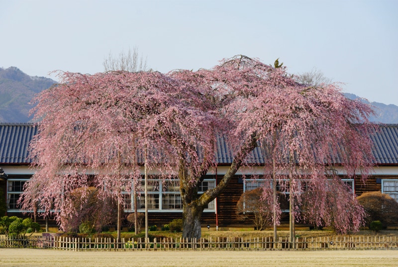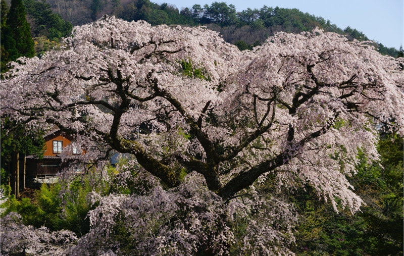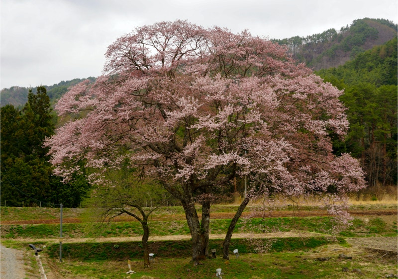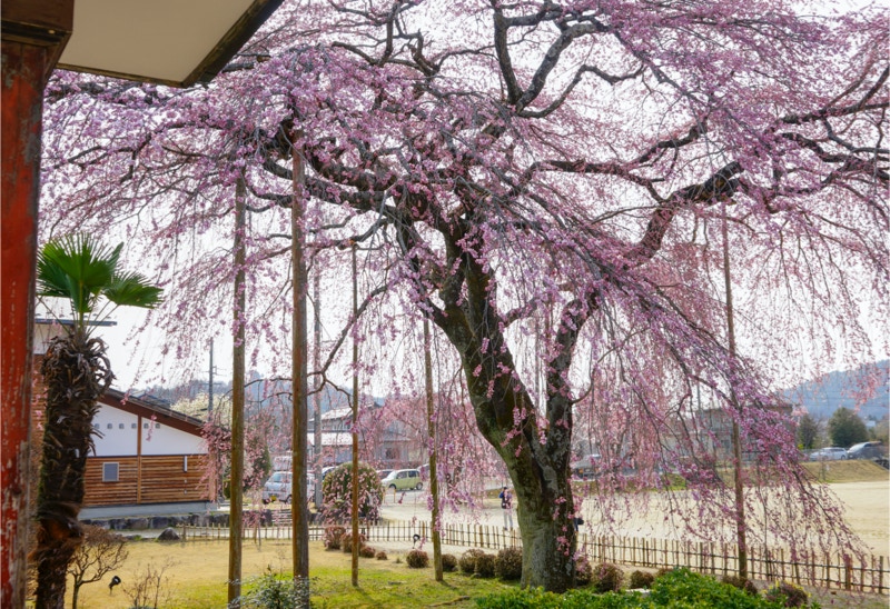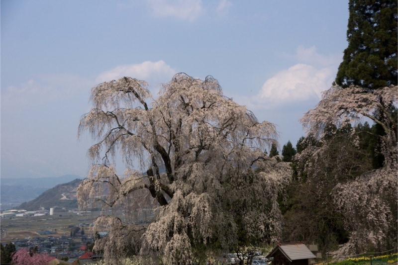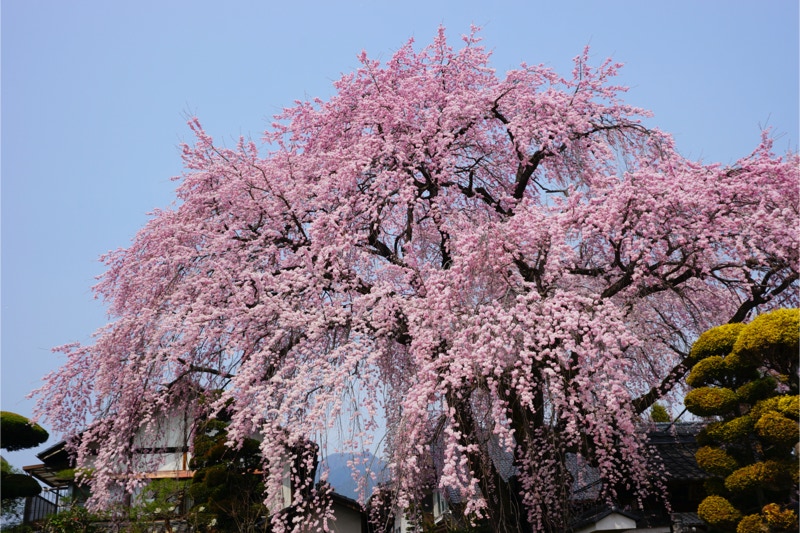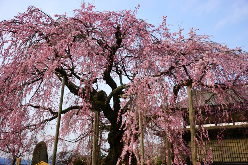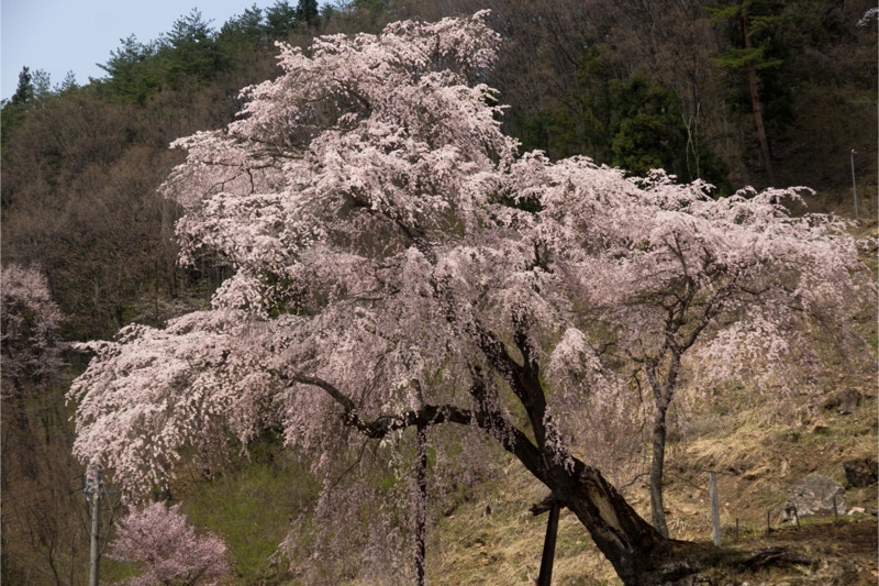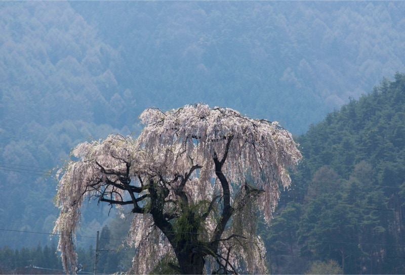 2018年は開花が異常に早く、例年の見頃時期に訪れた飯田市内はことごとく散り終えた後だった。だが、翌年はまさにドンピシャの満開日に訪れることができた。飯田市内の名物桜は決まって一本桜。しかも枝垂れ桜。