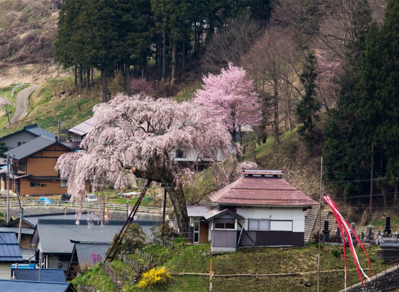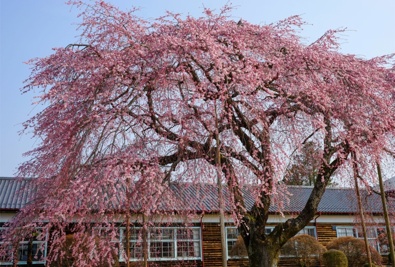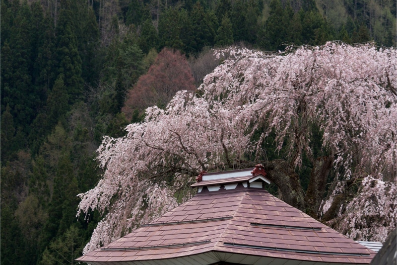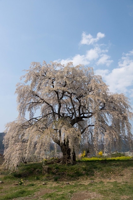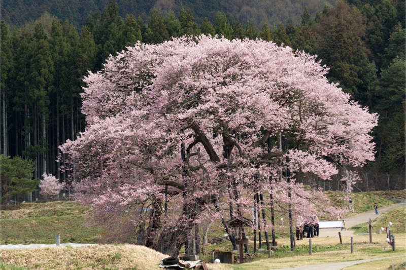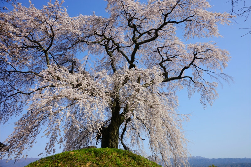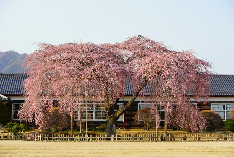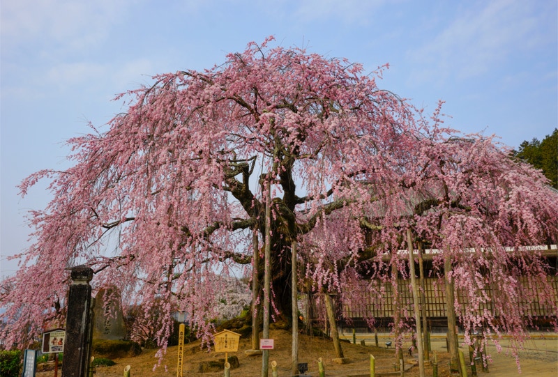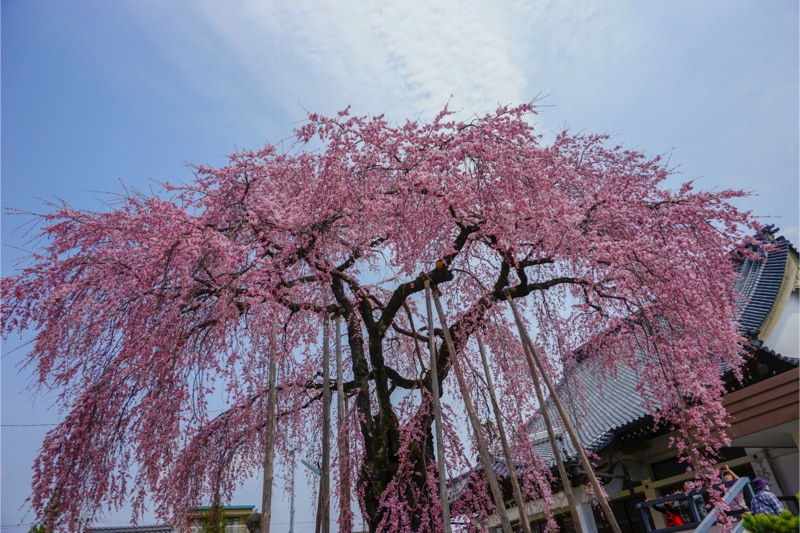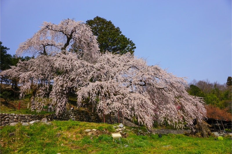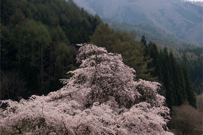 2018年は開花が異常に早く、例年の見頃時期に訪れた飯田市内はことごとく散り終えた後だった。だが、翌年はまさにドンピシャの満開日に訪れることができた。飯田市内の名物桜は決まって一本桜。しかも枝垂れ桜。