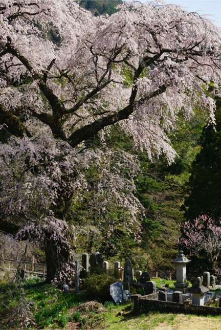 安曇野の古木は、決まったように墓地の真ん中にある。桜の下で眠りたいという思いからか。高山村の枯木もお堂のそばに立つ。観音堂だったり、地蔵堂だったり。これも納得。